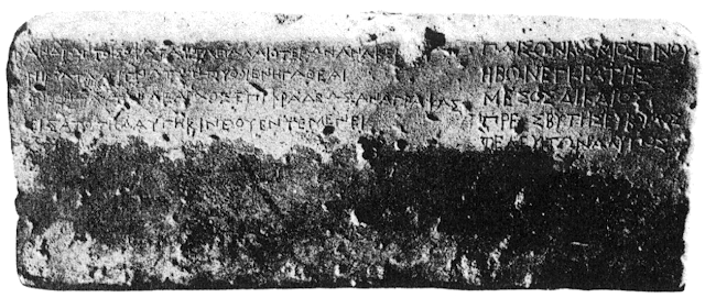 Źródło tekstu greckiego i angielskiego przekładu: Al.N. Oikonomides,Record of "The Commandments of the Seven Wise men" in the 3rd c. B.C., The Revered "Greek Reading-book" of the Hellenistic World. Dostępy tutaj